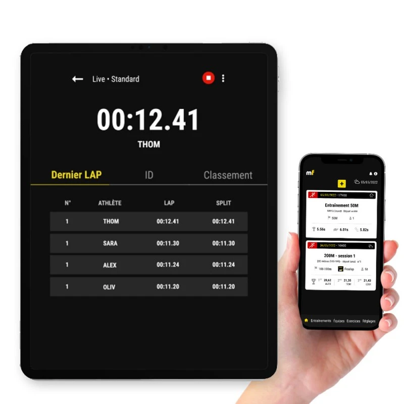 • TEMPS : Affichez instantanément les temps aux tours ainsi que les temps intermédiaires de chaque athlète