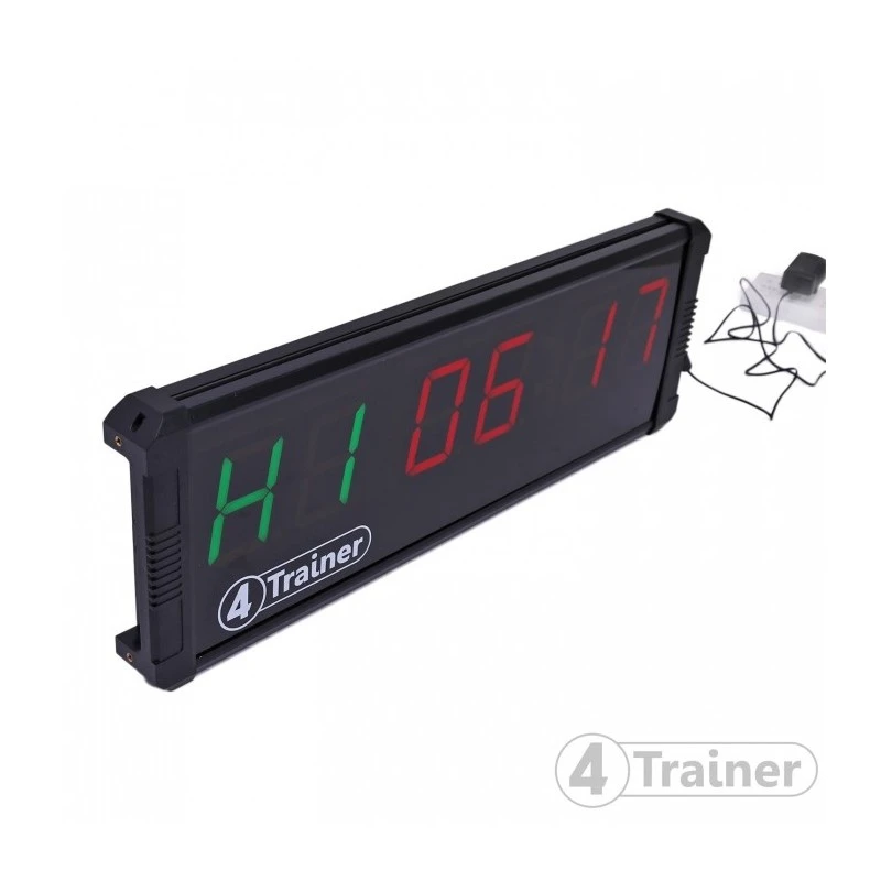 Le Gym Timer 4Trainer présente un grand affichage LED, avec des chiffres d’une hauteur de 10cm  très visibles. Il comprend une douzaine de paramètres pré-définis et permet de programmer des intervalles spécifiques pour des sessions d’entraînement personnalisées .