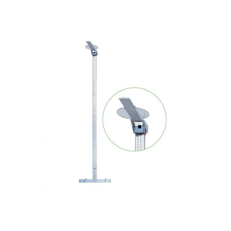 Son large curseur ainsi que la butée de talon en font un instrument parfaitement professionnel. La construction télescopique permet une lecture commode du résultat de la mesure : à partir d’une valeur de 130.5 cm, la taille est lue au niveau d’un repère placé à cette hauteur. Par sécurité, le curseur peut être rabattu lorsque la toise n’est pas utilisée